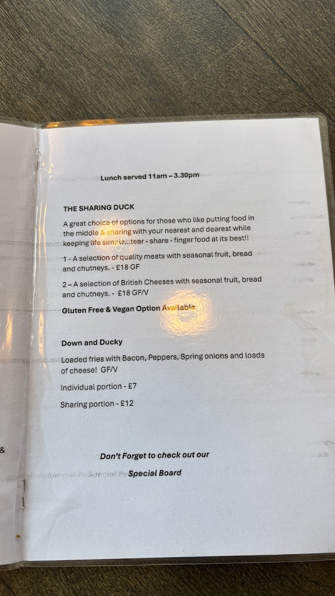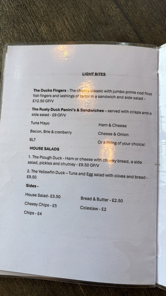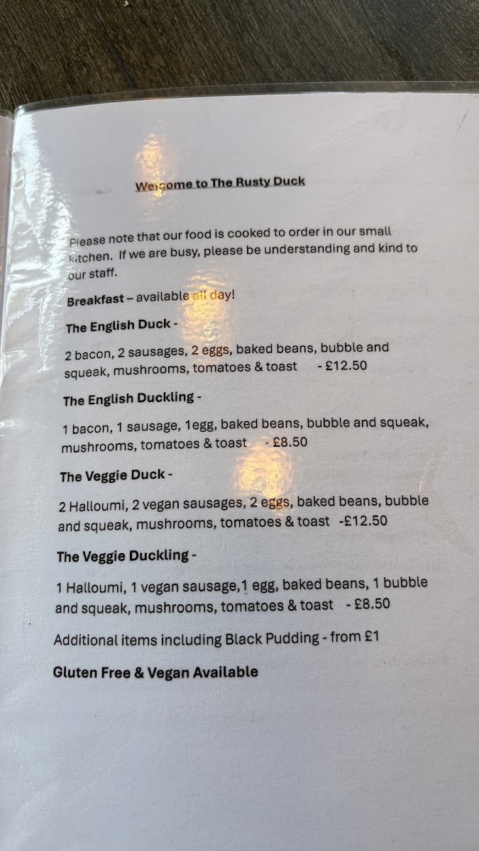 The Rusty Duck Menu